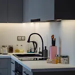 Modern Vitosha View Apartment With Free Parking erbjuder vardagsrum, uteplats och balkong, samt bekvämligheter som luftkonditionering. Detta boende har ett badrum med hårtorkar. Dessutom finns det en separat toalett och en dusch.